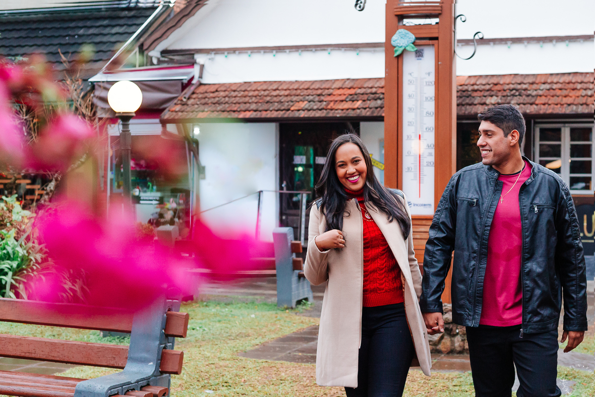Hoje é dia de se encantar com a Lais e o Artur! Eles vieram do nordeste para curtir o frio de Gramado e da Serra Gaúcha. O ensaio deles foi em uma manhã bem fria e chuvosa. As cerejeiras, magnólias a chuva e muitas risadas marcaram presença no ensaio fotográfico. Tivemos como cenário a Praça Major Nicolletti, Fonte do Amor Eterno, Igreja São Pedro e a Avenida Borges de Medeiros.